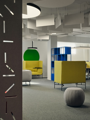 В данном проекте мебель играет не только функциональную роль, но и помогает значительно улучшить восприятие офисного помещения, сделав его более уютным, стильным и удобным. Мягкие текстуры, удобные формы и разнообразие цветовой палитры помогают создать атмосферу домашнего комфорта, где сотрудникам будет приятно работать, отдыхать, общаться друг с другом и обмениваться опытом.