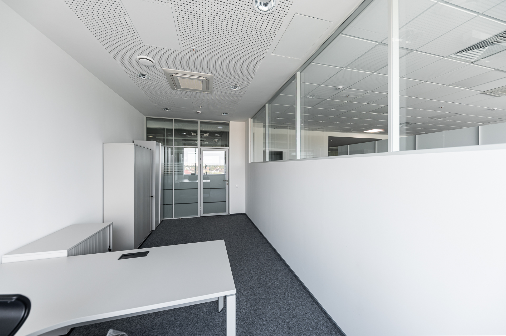 Общая звукоизоляция составляет до 36 дБ. В алюминиевых перегородках NAYADA-Standart были установлены двери Vitrag II со стеклянным полотном толщиной 5 мм. Они имеют тонкий матовый алюминиевый профиль цвета по RAL 7035 толщиной всего в 40 мм.